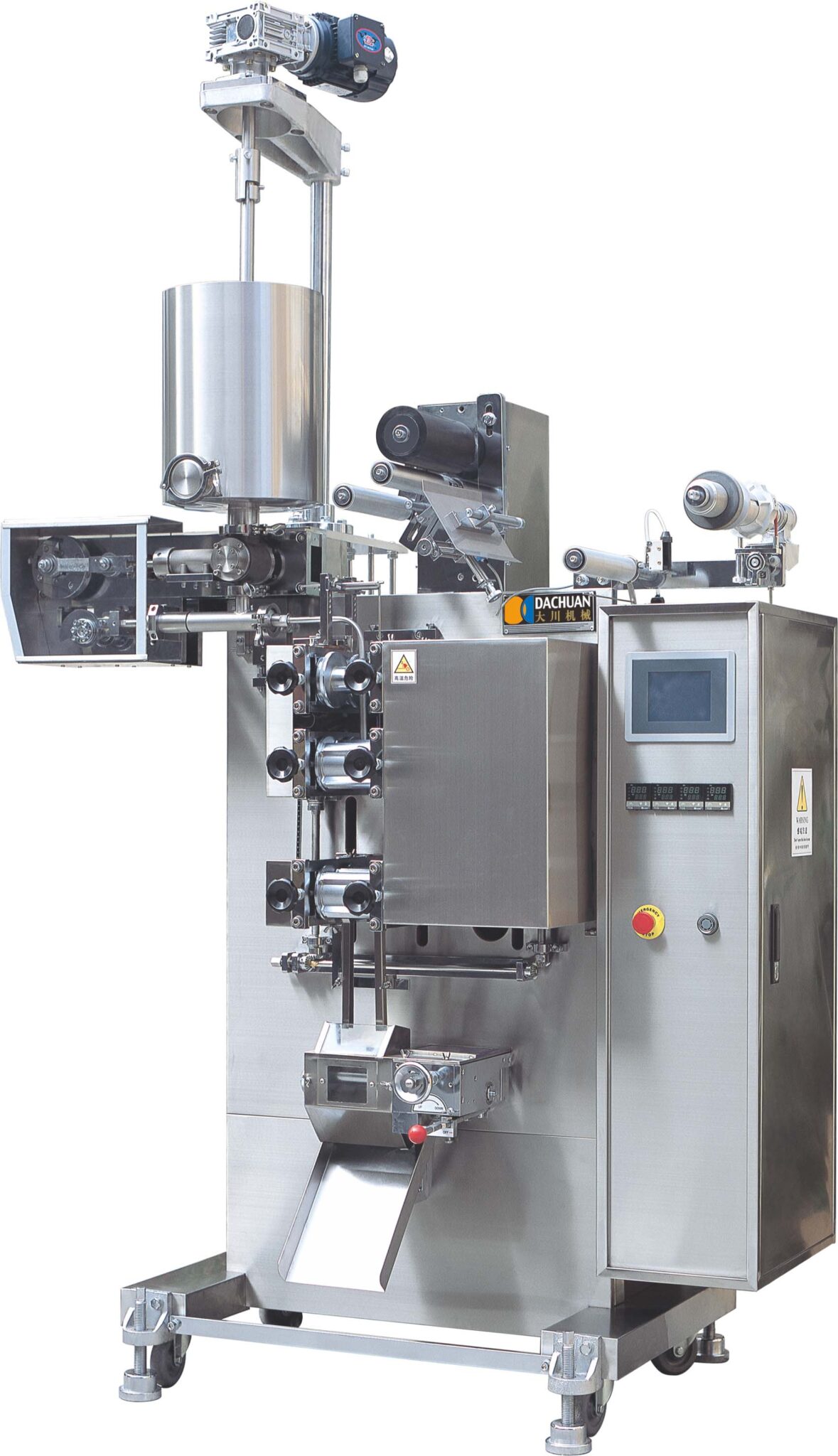 DC-338 series is an automatic forming, filling and sealing machine for liquid,viscous liquid(cream,sauce etc),powder, or granule etc. It can achieve 3 or 4 sides sealing.With an advanced industrial computer control system, it is easier to adjust the sachet size and speed on this machine. Most of the settings can be done on the touch screen with optional language instructions which makes the machine user-friendly and the whole production process simpler.