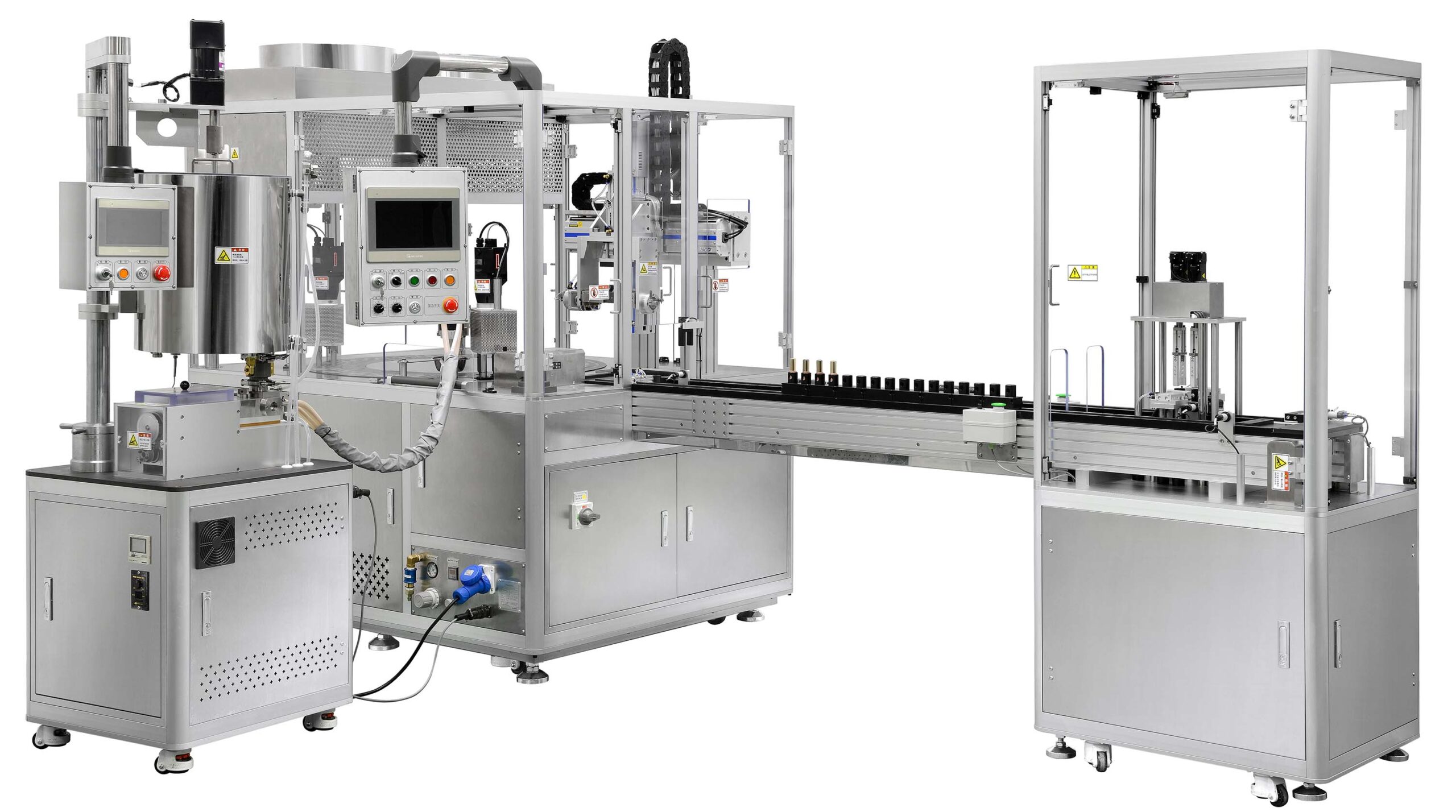 DC-830 is auto filling machine for high quality lipstick using silicon rubber. The silicon rubber specialized for lipstick uses material approved by FDA. It is harmless to human body and is excellent in elasticity&recovery force and it has long life compare to same kind of product which make it being able to produce high quality lipstick. The filling and cooling parts are designed in rotary type. By selecting rotary system, turn table is rotated in constant speed and temperature of silicon rubber is maintained constantly in each parts. With rotary table supplying container and extraction of lipstick can be done by one operator.